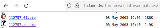 I Googled “Solaris patch 112757” and “Solaris 8 libm patch.” I found a few pages referencing this patch, but no downloads for it. Finally, on a hunch, I decided to browse the Latvian FTP site from which I downloaded the 112439-02 patch, http://ftp.lanet.lv/ftp/unix/sun-info/sun-patches/. I then searched the page and there it was!