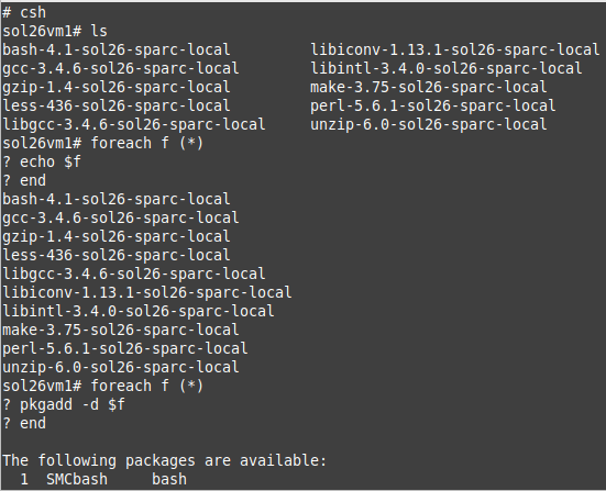 bash-4.1-sol26-sparc-local.gz gcc-3.4.6-sol26-sparc-local.gz gzip-1.4-sol26-sparc-local.gz less-436-sol26-sparc-local.gz libgcc-3.4.6-sol26-sparc-local.gz libiconv-1.13.1-sol26-sparc-local.gz libintl-3.4.0-sol26-sparc-local.gz make-3.75-sol26-sparc-local.gz ncurses-5.7-sol26-sparc-local.gz perl-5.6.1-sol26-sparc-local.gz unzip-6.0-sol26-sparc-local.gz