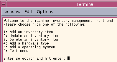 For these examples, I used the simple computer inventory database I created in my previous post on Solaris 2.6 and Oracle 8i.