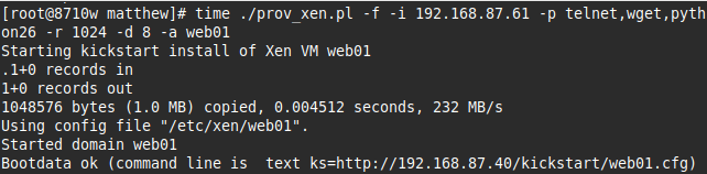 print "Starting kickstart install of Xen VM ${name}\n.";