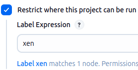 • I checked “Restrict where this project can be run”, with the label set to “xen”.