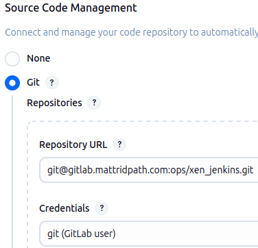 I also created an identical credential for Git, the only difference being that the username was set to git instead of jenkins.