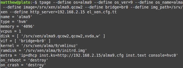 • For AlmaLinux, the files initrd.img and vmlinuz can be found here for version 9. I saved these to /srv/xen/alma/9. They can also be found on the ISO in images/pxeboot, as will be the case for Rocky Linux, Oracle Linux, etc.
