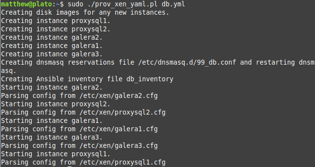 In my previous post on the Xen hypervisor, I mentioned my interest in writing a Perl provisioning tool for Xen that functions similarly to Terraform. This tool isn’t meant to replace Terraform (nor claim that it is superior), but there doesn’t seem to be a Terraform provisioner for standalone Xen. Furthermore, sometimes it makes more sense to code a custom tool that does exactly what you want, versus trying to adapt an existing tool, especially a complicated one like Terraform. This tool has a single purpose: to give the user the ability to define a set of virtual machines with their specs (RAM, disk space, static IP addresses, etc.) and spin up these VMs with a single command, as well as take them down when they are no longer needed.